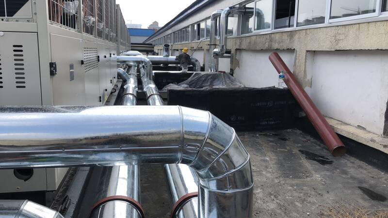 本項目為室外位于樓頂?shù)目照{(diào)模塊機組的管道防腐保溫工程。